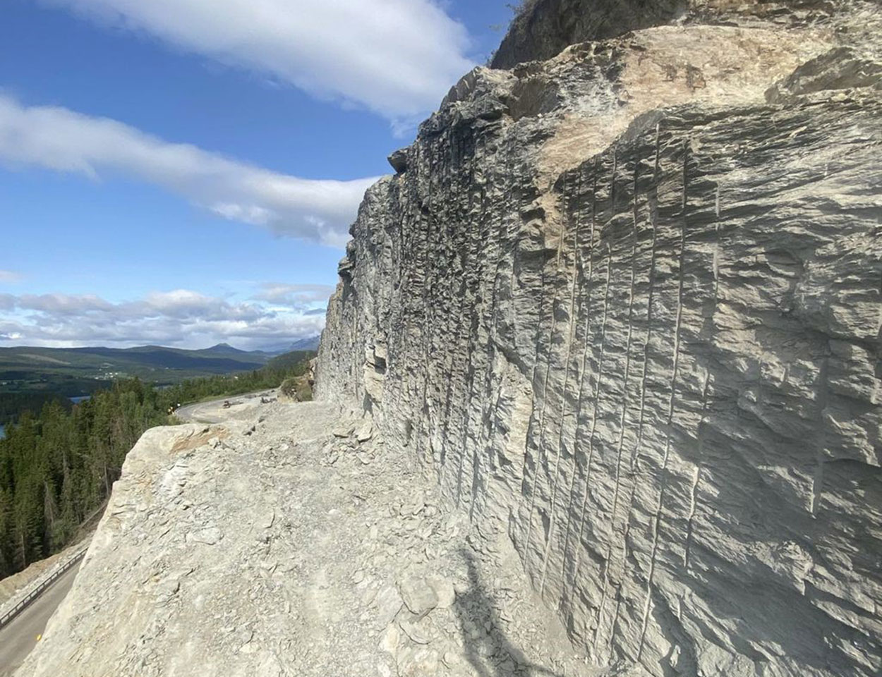 Sprengning og fjellsikring for etablering av ny 4 felts vei og påhugg til Gjønnestunnelen.