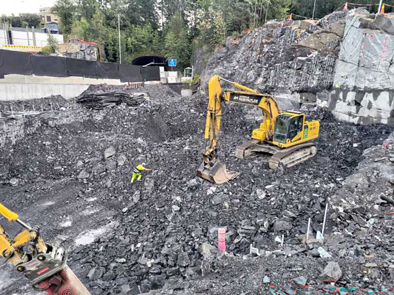 Vi har gjennomført sprengningsarbeider for etablering av ny 4-felts vei og påhugg til Gjønnestunnelen, tett på eksisterende vei, bebyggelse og t-bane. Totalt ble det sprengt ut ca. 15 000 m³ fjell.